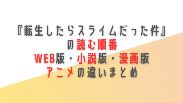 アニメ 『転生したらスライムだった件』の読む順番|WEB版・小説版・漫画版・アニメの違いまとめ 『転生したらスライムだった件』のWEB版・小説版・漫画版・アニメの違いを徹底解説。どれから読むのが正解か迷っている人向けに、各バージョンの特徴や楽しみ方をわかりやすくまとめました。初心者でもすぐに理解できます。 2025.09.19 アニメ