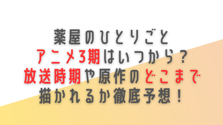 アニメ 薬屋のひとりごとアニメ3期はいつから?放送時期や原作のどこまで描かれるか徹底予想! 『薬屋のひとりごと』アニメ第3期の放送時期や原作のどこまで描かれるかを徹底予想。キャストやスタッフの続投情報もまとめ、ファン必見の情報を紹介します。 2025.09.27 アニメ